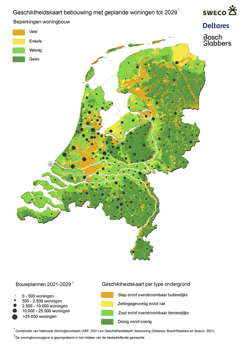 Naar schatting 820.000 nieuwe woningen zijn voorzien in overstroombare gebieden, gebieden met een slappe ondergrond of gebieden met een natte bodem. Het zijn locaties die kwetsbaar zijn voor overstromingen, wateroverlast, bodemdaling, maar ook voor droogte en hitte. Deze kwetsbaarheid zal door klimaatverandering toenemen.